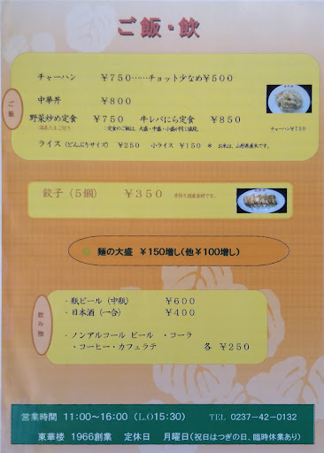 Read more町中華!文句無しの町中華です。普通盛りでも腹いっぱいになります。味付けは出汁っけ多め、塩気は少なめであっさり食べられます。 味付けの薄さに関するコメントも見られますが、あのボリュームで濃い味だと食べきれません。好みによりますが十分な味付けだと思います。 ソース焼きそばは真っ茶色な見た目と裏腹に野菜たっぷりで優し目の味。 あんかけ焼きそばは白菜の甘みを感じる餡でした。 味噌ラーメンは肉味噌の餡がのり個人的には一番好きな味です。 付け合わせの中華スープは懐かしくて素敵です。 山形県の飲食店ではお馴染みの漬物も多めに来ました。