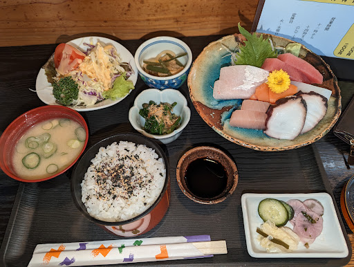 Read more何回かランチで行きました。 900〜1500円の価格帯ですがクオリティと量がいい意味で見合ってません。コスパ良すぎです。 美味しいし量もあります。 ちなみに写真は刺身定食で約1500円です。 正確な値段忘れましたが1500円でおつりが返ってきたくらいだったと記憶してます。 5/10追記