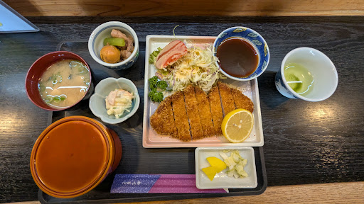 Read more平日ランチで訪問。ちょっと昔のちゃんとした料理屋さんといった雰囲気。店内はそれなりに広いです。1人なのでカウンターに案内されました。木魚をたたいたり、うなずきまくるお坊さんや仏さんがいて、なんか癒されます。 千円の日替わり定食が、数種類あって選べます。トンカツを選択。1,100円でトンカツ定食があったが、違いは不明。 トンカツは名店の味ではないですが、ちゃんと揚げたてで、お肉もそれなりに分厚く、サクッとしていて美味しいです。 小鉢は2種。コブクロの煮込み?は珍しい感じで嬉しい。フキも久しぶりに食べました。 高コスパでしみじみうまい「こういうのでいいんだよ。」...