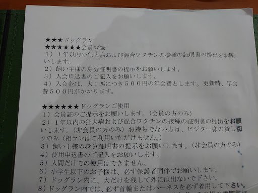 有料のドッグラン(駐車場内にあります)利用してみようかと思っていたのですが 基本的に貸切利用のようです。