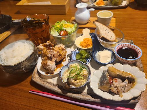 突き出しにわんこ蕎麦的なんが出てきて面食らう、ならぬ麺喰らう お待ちかねのスキレットパンは思ったほどチーズ入ってなくてションボリ、あくまでパンがメインすね 唐揚げも味は悪くないんだけど、ちょっと焦げ気味。ランチタイム終盤に入ったのでバラツキの下振れ引いたかな