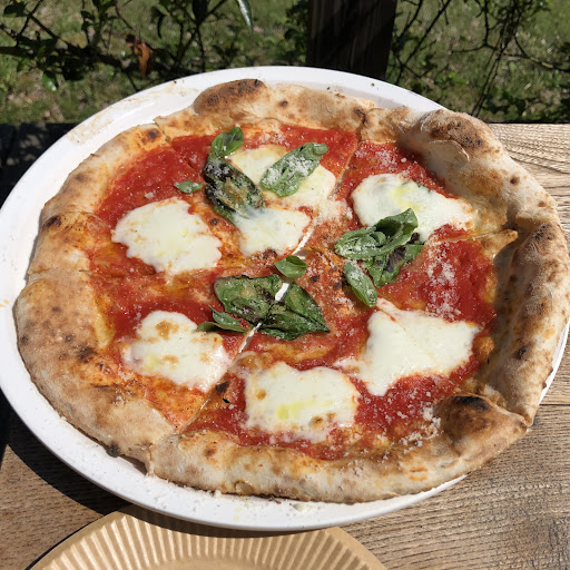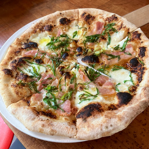 そしてピザ 直径約30センチでけっこうなボリューム(家族四人、三枚でおなかいっぱいでした) 手捏ね生地、薪火の窯焼き、 オーナーさんのこだわりがたっぷり。 ※手作りですが薪火なので調理時間は早い