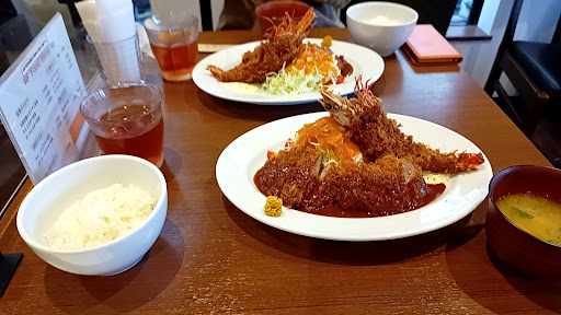 日曜日の昼過ぎに初めて行きました 自分はロースカツとエビフライセットを頼み、もう一人はヒレカツとエビフライセットを頼みました