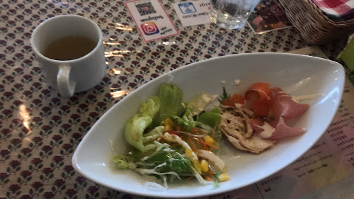 【食事】 前菜の野菜は、他のクチコミにありましたがドレッシングをかけ過ぎの印象… バジルソースも水っぽく安もんのソースという感じがしました。 そしてメインは、海の幸のパスタを頼みましたが、見た目はしょぼいし、味はまぁ普通…というレベルでした。 具材は小さいし、少ないし…と言った具合でした。 レトルトよりかは美味しいというレベルです。 麺は普通に美味しいのに、ソースが残念すぎてなりません。 お皿に関しても普通に家庭で適当に出す時の白のお皿こんなんやよなっていうお皿で出され、視覚的にも美味しくなかったです。 デザートのシフォンケーキと紅茶は美味しかったです! ふわふわで焼き直しているので温かく最高でした。 見栄えも良くお店のデザートという感じがしました。 紅茶に関してはポットでの提供だったので量もカップも可愛かったです!