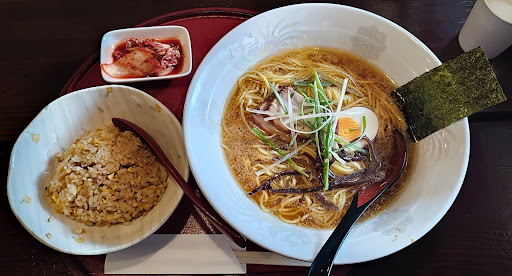 Read more美味しい!過去3ヶ月ほどで東大阪のラーメン屋さんはチェーン店2件とこのお店を利用しましたが、ダントツで美味しい。 半チャンラーメンセット1,000円を注文。麺は大盛りで同じ値段。チャーハンも濃すぎず、パラパラ、具材が細かく口当たりを邪魔しない。ラーメンはあっさりしょうゆ味にチャーシュー2枚、白髪ねぎとゆで卵1/2。麺はストレート。一品でキムチが添えられていました(写真では手前に配置を変更して撮りました)。スープが美味しく麺を大盛りにしたので、ラー油とキムチで味変しながら楽しみましたが、ラー油の香りともスープがよく合いオススメです。住宅街にあるのでわかりにくいですが、外装も内装もキレイにされており、気持ちよ...