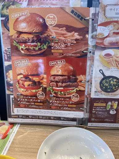 Read moreリニューアルオープン初日、11時20分頃に訪問。駐車場は広く、チケットももらえるので気にせず駐車出来ると思います。50分くらいからは待つ人が出始めていました。入口の発券機で受付し、レジ横のモニターに番号が出たら発券機で受付をもう一度して、表示されたテーブルへ自分で移動する最近流行り?のスタイル。注文はタッチパネル、サラダバーやドリンクバーなどの案内は店員の方からはなく、注文したから各々勝手に取りに行くと言う感じでした。ファミレスだし、私は効率よく良いと思いましたが、戸惑っておられる年配の方がチラホラ。実は去年、娘とランチで訪問していたのですが、サラダバーの野菜が傷んでいたり、ステーキが形をなしていなかったり、食事の提供が遅かったりという事があり、もう二度と来ないなと思っていました。リニューアルと言う事で、どお変わったか気になり今回訪問したのですが、以前とは比べ物にならないほど良くなっていました。まずステーキがちゃんとステーキでした笑大俵ハンバーグも店員さんが目の前でカットしてくれて、ソースもたくさん種類がありました。ペレットもしっかりいつまでも熱々だったので、好みの焼き加減に出来ました。オープン初日なので当たり前ですが店内も明るく、広々として清潔感がありました。わずかではありますが、お一人様用カウンターもあり、このクオリティがずっと続くと...