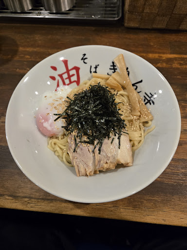 まず 混ぜずに麺を引っ張り上げ頂くと驚きで 麺も汁も 全く私好みで絶品モノでした 麺はモチモチと食感ヨク 小麦の風味と甘味が 有り 汁は醤油辛く無く 油シツコクも無く 途中から ラー油と ニンニクを少し混ぜ 最後まで 飽きるコト無く 完食しました また叉焼も トテモ旨く 完全に中毒になり 久々の「油そば」 ヒットです