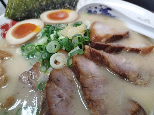 【ふくちぁんラーメン】 店名の入った820円のこちらをチョイス、 麺は固めでお願いしました。 スープは白濁した博多豚骨スープです。 薄めながらも豚骨の風味は出ていますが、 人気店のような獣臭溢れるスープには劣ります。 とはいえ色が白いだけのペラペラスープとは違い、 十分豚骨スープの名を謳えるレベルにあります。 しかし820円じゃそのレベルでは困るのが本心。