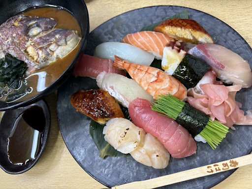 Read more昼間開いて無いのか?ホームページにも書いて無い。 2度来たが未だに食べられず…。 食べたいなら夕方からになるんだろうか? 酒呑んでる人の横で寿司を食べたくないから昼間に行きたいが…営業時間が全く解らず。 いつ昼間に行けるだろうか。 追記 ついに、行けた! たまたまかも知れないがシャリが全くベチャベチャ感が無い! ネタも臭み無く味も素晴らしい! 私にはマイナスにはならないが…マスクはして無い様子でお勘定をお願いした時にコーヒーサービス何ですと言われたが…お勘定と言った後に、もう1度席に着くのも嫌だから断った。 コーヒーは事前に聞くか途中で聞いて欲しかった。 お客さんとも良く話しており、気にする方は行けないだろう。 気にしない人には良いお店だった。 何よりい〇吉みたいに並ぶ必要無く食べれたのが嬉しいし余り大差は無いレベルだろう! 問題は1半で頼むと同じのが何個か皿にのるので、好きで無い物が2つ揃ってしまった場合4貫食べさせられる羽目になるかも知れない。 私はホタテを除いて貝類は余り好きでは無いので当たらなくて良かったε-(´∀`;)ホッ 青魚も少し苦手(´・ω・`) 食べた時の物は 無難なネタで万人受けする物だった!