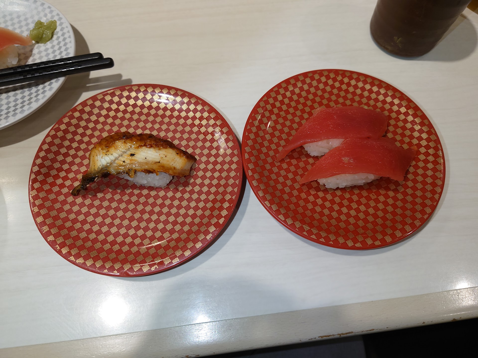 The parking lot is wide, but it will be full of cars at dinner time. Order on the touch panel and it will be brought to your seat on a train or car-shaped tray. I'm glad that I ordered gari and it was sent to me, but the amount was small, so it was a little troublesome to ask for it many times. The lean tuna was quite different from the picture, but it was not stringy and the taste was delicious. I thought it was difficult for children to eat because the tuna lean meat had chopped wasabi on top, even though I could choose the medium toro without chopped wasabi on top. Basically, the impression that it was cheap and delicious...