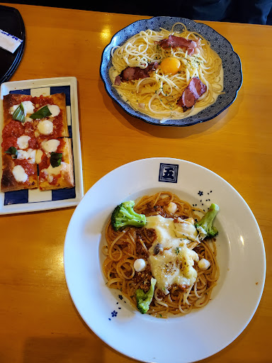 Read moreパスタをメインにしたチェーン店です。 家族揃ってパスタ好きなので普段はジョリパスか五右衛門か気分で行き分けています。 五右衛門は量を選べるのでガッツリ食べたい時に選ぶ時が多いです。 家族の意見で却下される時もしばしばありますが。 ディナータイムよりランチタイムの利用が圧倒的に多いです。 当店舗はフレスポ東大阪というショッピングモール内にあるため休日ランチともなると買い物ついでの家族連れで混雑しますので、ちょっと早めのランチタイムに行くと待ち時間なく座れることが多いです。