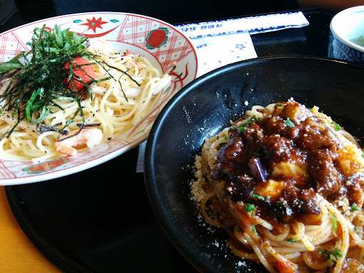 Read moreどれも美味しいです。 一番のお気に入りはカルボナーラとジェノベーゼなので、 ハーフ&ハーフのCセットでしたらどちらも食べられるので毎回これです。カルボナーラはベーコンがカリカリで少し厚切りベーコンも入ってあります。黄身が乗ってあるので熱いうちに混ぜるとちょうどいいので運ばれたらすぐに混ぜるのがいいと思います。 こちらのカルボナーラが一番好きです。 ジェノベーゼもアボガボが入ってありますが、生のアボガドを使用しているように思います。コクがありハーフでも食べごたえがあります。 ハーフ&ハーフですが1品の普通の量のパスタよりこのセットの方が多いように感じます。 カルボナーラはコショウを店員さんに頼んで持ってきてもらいたっぷりかけると美味しいですよ~。ディニッシュピザも生地がサクサクで美味しかったです。 食事と一緒に頼めばデザートも安くつけることができます。 決して安くはないですが、どれも美味しいです。 フレスポ内なので駐車場も無料なので安心です。 土、日曜日は2時くらいまでは混んでるので待ちがありますが、とんでもない待ち時間はないと思います(20分~30分) ハ...