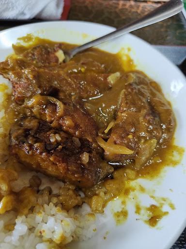 運ばれてきたのは 私の手のひらくらいの トンカツとライス300gくらいのカツカレー。 カレーは1日以上冷蔵庫で寝かせた、 お母さんが作ったカレーって感じです。