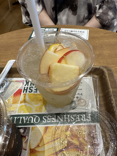 食事は季節限定メニューのマッシュルームチーズバーガーをそれぞれいただきました。 個人的にはあまりキノコの香りを感じず、物足りなさを感じました。 また、アップルジンジャーレモネードは、はちみつも効いていて飲みやすく、バーガーとセットで是非とも頼んでほしい一品です。