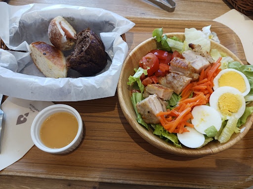 Read moreHay opciones para comer en este shoping.. escogí este, les pague mi orden.. una hamburguesa con fritas y un cafe frio. Creo que fueron ¥1200, tuve que prepararme el cafe sola, tuve que servirme agua sola, tuve que agarrar los cubiertos y llevarlos a la mesa.. por suerte me trajeron el plato de comida a la mesa, pensé que tenía que ir a buscarlo a la cocina. Luego tuve que levantar la mesa llevar el plato, los vasos etc y clasificarlos. Salí corriendo por miedo de que me mandaran a sacar la bolsa de basura afuera. La hamburguesa no tenia gusto a nada, las papas hechas con aceite viejo. . Solo el pan estuvo bueno. Mucha suerte y espero que mejoren. No quieres pagar personal, lo entiendo. Pero a cambio debes bajar los precios.. en cualquier lugar puedes almorzar por 1.200 yenes sin tener...
