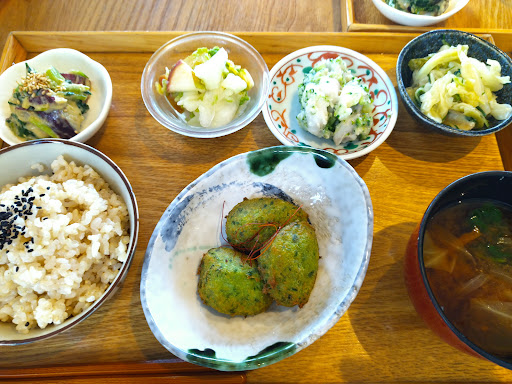 ランチの内容は、おいしさ、値段、質等考えて、100点満点で言うことないという感じです。お腹もほどよく一杯になるボリューム。ごはんもおいしかったですし、色々な野菜がとれて良かったです。 週末に遅めのランチに行ったのですが、パンのランチは品切れで、ごはんのランチは五分づき米しかありませんでした。玄米が食べたかったので少し残念でした。色々選びたいなら早めに行くのがおすすめです。 ランチは1,100円で、ドリンクをつけると1,300円だったかと。 未確認ですが現金払いだけかもです。 お店の外で、(一部無農薬の)野菜が売られているのもうれしいです。飲食と別会計で、小銭が無ければ店内で両替してもらえます。 店内の設備、ウォシュレットではないとか、席によってやや空調に難あり等の...