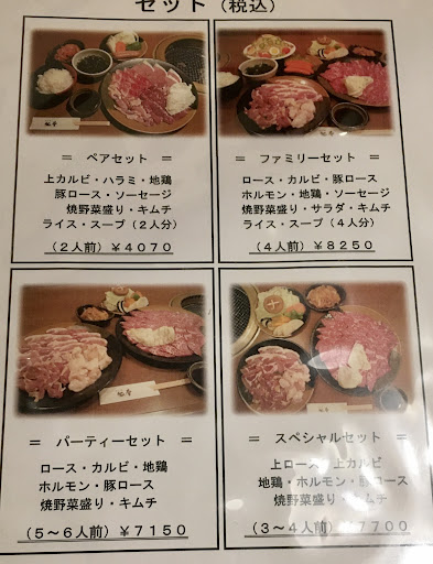 ファミリーでの身近な焼肉としての利用をお勧め! 値段はかなりリーズナブル。肉の枚数も多いので、見た目で満足感高い。タレもおいしい。飲み物をたくさん飲まなければ、一人3000円いかないくらいの値段(我々は夫婦で5000円)。...
