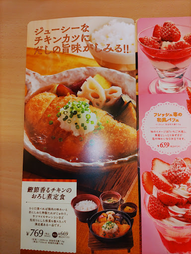 Read more久しぶりにジョイフルに行って添付の写メの新商品・「鰹節香るチキンのおろし煮」を食べました。チキンカツに大根おろしがタップリ入ったしっかりと旨みの出た鰹だしがかかっていて、付け合わせのレンコンなど(素揚げしてあったような気がします、定かではありません??😅)の野菜もホクホクでとても美味しかったです😋👍 年を召した方でもペロッといけそうですね(^^)/ デザートはチョコがかかったバニラアイス🍨、これも濃厚なんですが後味サッパリで美味しかった😋女性従業員の対応もテキパキとして良かったです。皆さん⤴️ジョイフルに行かれたら一度食べてみて下さい😊🎶✋ ...