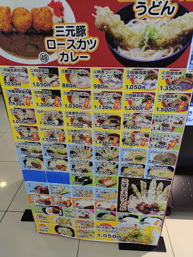 南九州最大級のサービスエリアとのことでお店が充実してる。フードコードにはうどんラーメンカレーなど定番メニューを提供するこちら、うまか軒、もつっとちゃんぽんのおもて庵、またいきなりステーキなども入り、辛子蓮根などお土産ショップも諸々。 まぁ選択肢色々あれど結局ラーメンしか見てないわけなので、というわけで、うまか軒さんでのオーダーは