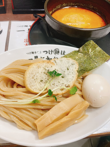 彦根ベルロードのココスの奥にあるつけ麺専門店であります(`・ω・)ゞ 元々は十二分屋彦根店の跡地になります 駐車場は店舗前に十分な広さの駐車場があるので安心です(゚∀゚) 店舗内はカウンターが8席のテーブル席が4席ほど。満員の場合は受付だけして車で待つスタイルQRコードを読み込めば順番が来たらメールで連絡が来るシステム。携帯持ってない人はどーするんだ? 注文制でつけ麺の種類は3種類あり『和』『洋』『辛』の3種類。 今回はアチキが『和』連れ合いが『洋』を注文。麺量は互いに中盛(300g)で。 提供時間はつけ麺だけあって遅い。まぁ茹で時間がかかるのはつけ麺の宿命か。 つけ汁には焼石が入っており熱々で提供されるのが嬉しいところ。(ФωФ) 『和』は魚介と豚骨のコクが効いており濃いめの味付け。別添で柚子の皮が付いておりますよ。かたや『洋』は海老の風味で濃厚なブイヤベースの如し。『洋』にはパンが1切れ付いておりました。 共通して麺は小麦の風味が素晴らしく非常に美味しい。連れ合いは麺だけでも全然食べられると絶賛でした。 食べ終わるとつけ麺御約束の『スープ割』もしくは『飯ダイブ』を選べます。 今回、唐揚げも注文しましたが唐揚げは結構普通でしたが唐揚げ用塩が用意されていたのは良かったですね(ФωФ) アチキぁあまりつけ麺は食さないのですがまた来たくなるほど美味しくいただきました ヽ(*´∀`)ノ♪ ごちそう...