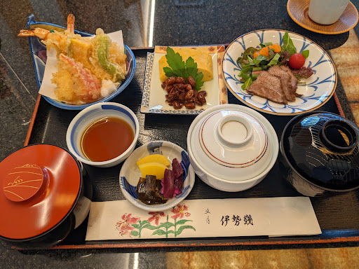 ○フード 老舗の料亭・仕出し屋さんで、よっぽど期待してなかったのですが…結果、いい意味で裏切られ、よかったです! 器もよく、味もこすぎず、天ぷらもサクサク。 がんもどき(のようなもの)は、よく、甘すぎたり、出汁がききすぎたりしていますが、伊勢幾さんのは、そんなことなく、素材の味とのバランスがよかったです。 ご飯がベチャッとしてるのだけが難点で、それ以外はめっちゃおいしかったです。 妊婦で私の大きいお腹を見て、お刺身はなにか別のものに変えましょうかと提案しただき、牛になりました。ありがたいです。