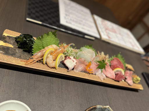 近江牛を食べたくて来店、夜も遅かったので空いてる店舗が少なく、Googleマップで見つけて電話して予約しました。 電話対応は良く、お刺身の盛り合わせは時間がかかるのでお電話でも予約可能と余裕のある対応をしていただき感謝です。
