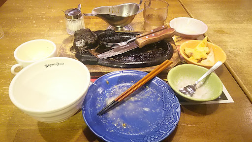 晩飯は駅から徒歩圏内のハンバーグ&ステーキ屋。 名古屋のチェーン店のようだが、初めてなので雨の中来てみた。