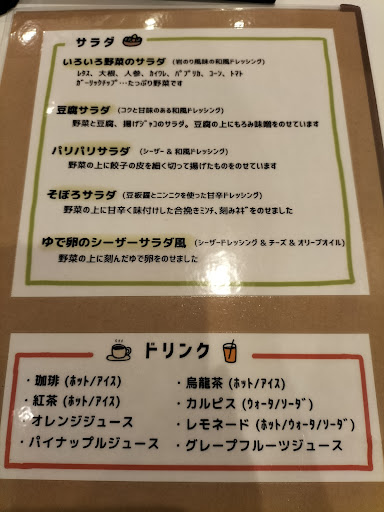 二度目の訪問 サラダ&スープCセット1700円 サラダ、メイン(スパゲティかご飯物)飲み物が、選べました。 サラダは彩り野菜を。 主食は豚パリパリ丼。 飲み物はアイスコーヒー。 二年ぶり値上がりはしていました。 スープは温かくコクがあって美味しくサラダも大根多めで良かったです 豚パリパリ丼は、パリパリは大根の素揚げ?と甘辛い豚の味付けで、美味しく食べれた。 私の胃にはご飯少し多めに感じた。 相変わらず女性には人気っぽく、入店客は女性ばかりです。 〆のデザートは冷たいバンナコッタと果物、きな粉シフォンケーキの二種類で、女性には嬉しいと感じさせる量でした。 それで充分に満腹できました。 さらに上の前菜が着く1900円コースもあります。4コース(A.B.C.D))選べるので、自分の胃と相談すれば良いかなって思います。...