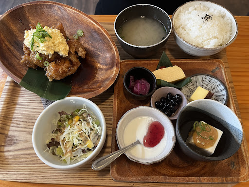 Read moreチキン南蛮と海老フライ定食頂きました😋チキン南蛮は人気通り美味しかったです。唐揚げにも甘めの味が付いていて🤭タルタルソースも美味しかったです。ちょっとタルタルソース個人的には少ないですが🙄あと小鉢何種類か有りますが😱どれも味が濃いめで不味い😅南蛮が味が濃いめなので小鉢迄も味濃いめはどうかと、豆腐にかかってる胡麻タレも、漬物、ミニチーズケーキも口直しにはならないかなぁ‼️個人的な意見ですが😬ヨーグルトくらいですかね✨アッサリ食べれるのは✨海老フライの方はタルタルソースの器小さすぎて海老フライ箸で持ってタルタルソース付けようとしても海老フライにタルタルソースが絡まずメチャクチャ食べにくい‼️最悪😞⤵️⤵️最初から海老フライにタルタルソースかけてある方が正解と思います🙄食べる側としてわ😤しかも南蛮と違って海老フライに味が無いのでタルタルソース全然足りませんので😰器の変更が良いのでは、あと有料でも良いのでタルタルソースの量何とかして欲しいですね✨チキン南蛮は唐揚げ自体にも甘酢の味付けあるのでタルタルソース無くても美味しく食べれますが😋海老フライはね...