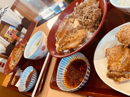 Restaurante 24 horas de pratos tradicionais japoneses (tanto que você só encontrará chá verde, ainda que à vontade, para beber). Os pedidos são feitos à partir da compra de tickets logo na entrada. Atendimento bom e tempo razoável de espera (mas acredito que seja porque quando fomos só havia um funcionário no local). Super recomendo o カツ丼.A carne de porco empanada é saborosa e super crocante por fora.E super recomendo também pedir o óleo chili dentre as opções disponíveis...
