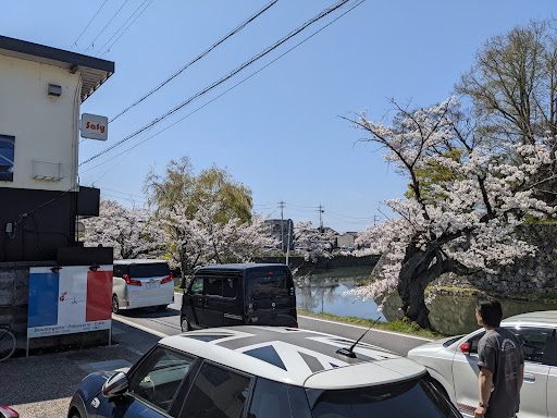 国宝であり、日本百名城にも名を連ねます"彦根城"と庭園の"玄宮園"の散策の後、城のお堀沿いに見つけましたのは、この日の目的の『Pomme d'Amour』さんというお店でした。