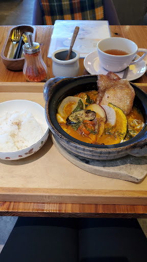 Read more1人だったので カウンター席に座りました。 カウンターにいるお姉さん入社二年目なのに、目配り気配りできて接客が素晴らしい!紅茶のリクエストも出来ますしランチ時はおすすめです。紅茶が好きな人にはピッタリ!美味しい料理と色んな紅茶が楽しめます。 今回はスープカレー頂きました~! 野菜タップリ+チキンも大きくとっても食べ応えありました~。 ご飯も付いてるので本当にお腹満たされました。 チキンが大きく熱かったので、ナイフがあれば食べやすいかなぁと思いました。 フォークよりナイフを付けて欲しいです! ご飯の量は選べるのでしょうか? 半量でもよかった位のボリュームです。 紅茶は何度も回ってくれるので色んな味試せていいのに、ランチのボリュームが多く値段も高めです。 ゆっくり過ごしてたらデザートを勧められましたが、お腹いっぱいでデザートまでは頂けませんでした。 値段が高いので、1人ランチには贅沢かなぁとは思います。 けど、紅茶好きにはたまらないお店なのでご褒美にはいいかもしれません。