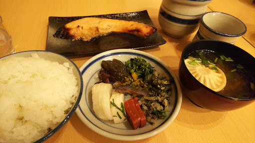 今回は白ご飯+焼魚が大好きな私にはマストな季節限定「鮭の味噌漬セット」を迷わず選んでシェアして美味しく頂きました。