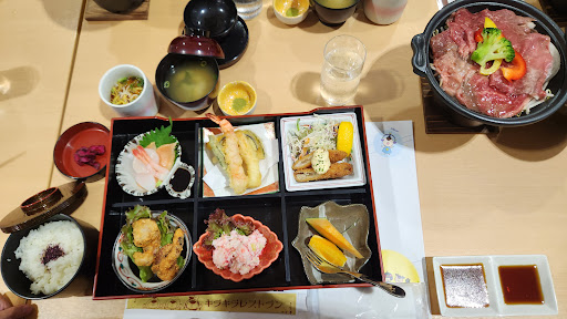 夏休みを利用して宿泊で朝夕を利用し、2日目にランチで利用しました。 朝食は和食限定で、夕食は宿泊予約時に大人、子ども各2種類からメニューを選択する形です。 朝食は少なめ、夕食は多めの量でした。 どちらも給仕制です。