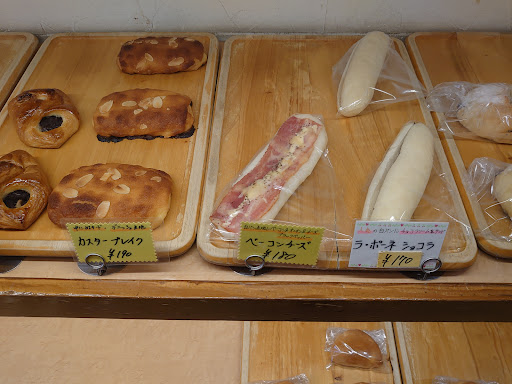 Read more定番のパンが多めで、値段は安い方であると思う。食パンが人気そうで店の外の看板に食パンの在庫個数が書いてあるので買っていく人が多いのではと思いました。夕方に行った時には食パン売り切れてました。 そしてパン屋では珍しいですが、手作りっぽいプリンやアーモンドバターも売ってました。 どのパンを食べてもハズレがないと言っても過言ではない! 店員さんは良い意味でいうと下手に干渉してこなく悪い意味で素っ気ない感じに受け取れました、でもそんな事気にならないくらい...