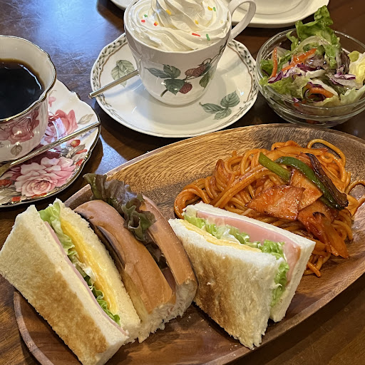 画像不良の為の再アップ(2024年1月訪問) 土曜日の10時前に訪問。 結構いらっしゃるご様子で駐車場が1杯、駐車場は7台+その前に駐車すれば後、3台くらい可 店内は申し訳程度にカウンターに3席、4人用テーブル×7 6人用テーブル×1くらい。 メニュー表を見ると平日限定とか休日限定とか色々あり、モーニングメニューも色々。 ガッツリ派としては、スペシャル焼きミックスサンドを注文しましたが確かにスペシャル、具材たっぷりで頬張るとまぁまぁガッツリで、からしマヨ感がマクドを彷彿とさせます。 そして手元のサンドから具材が溢れて手やら下に少々被害がw 追加で紙おしぼりを貰えるのであらかじめ用意しておくが吉。 パスタは具無しナポリタンですが出来たてっぽくでソースが良く絡んでたので、これはこれで 値段的には御高いものを食べましたが満足です、時間限定ではありましたがワンコインでも充分食べ応えありそうなのもありまし...