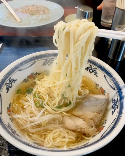 セットのビジュアルは半ちゃんは中華オタマ一杯分程で大き目の玉子が目を引きます ラーメンはノスラー的で非常シンプルでドンピシャですね 先ずはスープですが、非常にアッサリですが出汁の旨味もしっかりと出ており美味いです もう少し醤油ダレを足しても良いかなぁ 麺は細麺ストレートですが、パツパツでは無くプツプツ的食感でコレも美味いッス 少量のモヤシも食感良く良いアクセントです 焼豚は唯一チョット残念かなぁ サイズは大き目ながら薄く旨味も今一つ 炒飯はややパラ系で塩味抑えてコチラもアッサリ的な味わい