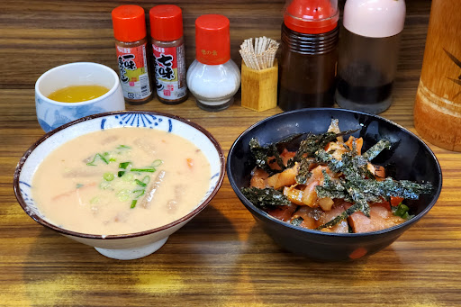 Read more歴史ある大衆食堂なのでお店は古く、入る時に勇気がいります。入ると左側に惣菜、右側に厨房があります。期間限定のまぐろのほほ肉の炙り丼(大)(1100円)とあら汁(230円)を注文しました。先にあら汁が到着し、そのあらの多さにびっくりです。豪快に盛られたあらが器から飛び出していました。具材は日替わりということで、今回は鯛、サーモンなど数種類が入っていました。甘めの味付けと魚から出た旨味で最高に美味しさを味わえます。これで230円は安すぎです。次にほほ肉の炙り丼(大)がやってきました。大にしては小さめかなと思いましたが、食べてみるとボリューム満点です。魚の頭の部分は胴体よりも旨味が詰まっています。特にほほ肉の味は噛むほどに旨味が出てきます。炙りと食感からローストされたお肉みたいな感じです。魚ですが焼肉のような感じもします。噂には聞いていましたが、リーズナブルで美味しいお店でした。1つ欠点は店内がかなり年季の入った感じなので、特別な日には使えません。美味しい大衆食堂としておすすめします。
