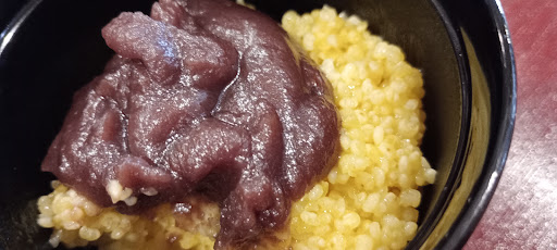 ご飯みたいな粟の上にねっとりしたこし餡がかかっていて、おはぎ?いや違うな…なんだろ?粟がプチプチしてて美味しかったです。