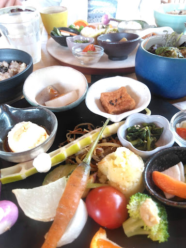 Read moreまぁるランチにプチデザートとドリンクをつけたメニューをセレクトしました。 プレートの上に野菜を使った料理が少しずつ盛ってあり、どれも優しいお味でした。 肉類が全く無いのでちょっと物足りないかな…と思いましたが、食べ終わるとお腹いっぱいになり満足感はありました。 もちもち玄米ご飯ですが、量が少な目なので男性やガッツリ食べたい方は物足りないかも知れません。 濃い味が好きな方には薄味に感じられるかも知れませんが、材料そのものの味を楽しむことができ、身体によさそうな優しい味でした。 デザートにでてきた米粉シフォンケーキももちもちふわふわでとても美味しく、コーヒーも美味しかったです。 お店の中は、木のぬくもりが感じられ、家具もナチュラルテイストで、落ち着く空間でした。 お子さん...