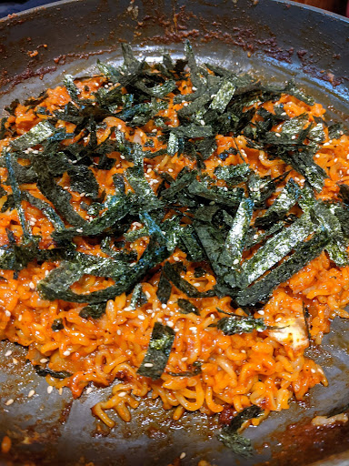 通常〆はご飯入れてヤキメシするかなと思いきや先輩の無茶振りで麺もインすることに 笑 これが大当たりでめっちゃいいですよ!