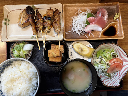 Read more(2025.8) 開店直ぐ伺いました。 いつもの焼鳥定食を注文。 手羽、つくね、砂ずり、ねぎま美味ぁ~✨✨ 刺身新鮮美味ぁ~✨ 蛸が無かった⋯💦 ご飯大盛無料助かります✴️✴️ 大将味噌汁忘れてました💦💦 税込¥891まだ又安っ✴️✴️ (2025.3) ランチに伺いました。 焼鳥定食を注文。 焼鳥、刺身、小鉢、味噌󠄀汁、サラダ、デザート以上税込¥781安い!! 焼鳥美味っ!つくね美味っ!皮美味っ!タレも美味っ! 刺身新鮮美味っ!蛸美味っ! 小鉢美味っ! サラダ美味っ!トマト美味っ! ドリップ珈琲美味っ! うまぁ〜ウマァ〜美味ぁ~大満足!! 『もう二度と行く』 大将親切丁寧な対応でした。