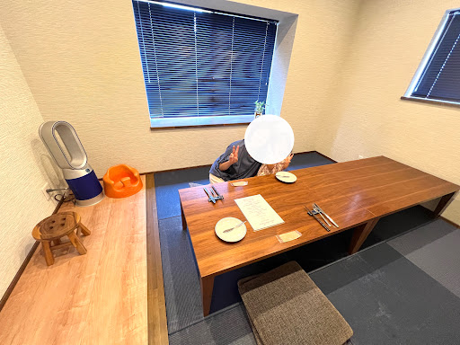民家を改装した店舗には、店舗前3台分と店舗裏手に3台で系6台位の駐車場が有ります。お店はシンプルでお洒落な雰囲気。厨房が見えるカウンター席とテーブル席で構成されてます。