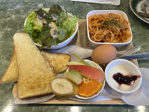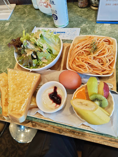 日曜日の午前9時頃モーニングを食べに訪問しました。カフェは階段を上がった2階にあります。お店の前に無料駐車場が10台分あるが、1階のお店の駐車スペースが決まっているようで実際にはこのカフェの駐車スペースは6台分でその内3台が軽自動車用でとややこしかったです。テーブルも4名用2名用合わせて7個あったが、ほぼ満席で賑わっていました。綺麗なお姉さん2人でお店を回しているようです。私はアーモンドトーストが食べたかったのでドリンク料金+400円で食べれるCセットを注文しました。提供されたプレートにはアーモンドトースト2切れの他に野菜サラダ、ナポリタンスパ、ゆで卵、ヨーグルト、それにいろんなフルーツ盛り合わせとかなりのボリュームで盛り付けも綺麗でした。アーモンドトーストもとても美味しかった。それにブレンド珈琲も程よい酸味が効いていて凄く美味しかったです。ただ個人的にはスパの量が多く感じたので、スパとヨーグルトの容器を逆にしてほしいかな。カフェ ド...