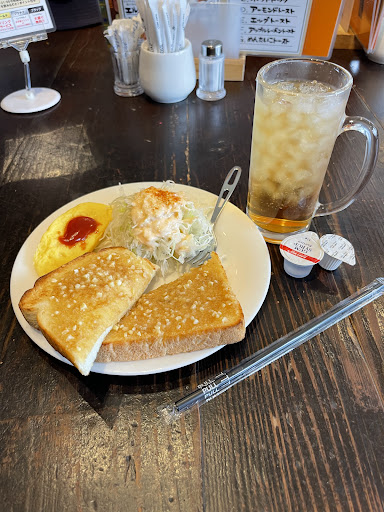 Read more姫路名物がアーモンドバタートーストだと聞いて、土曜日の午前10時頃来店しました。無料駐車場はお店の前には3台分しかないが、少し離れた場所に第2、第3駐車場があり、全部で20台くらい停めれそうです。お店は2階建てで1階は満席で2階も混んでいたが、すぐに2階のカウンター席へ案内して貰えました。モーニングセットは、メインがホットサンド、アーモンドトースト&サンドイッチ、エッグトースト、ホットケーキの4種類あり、ドリンクはホットコーヒーかホット紅茶が選べます。私はアーモンドトーストのキャンディを注文しました。料理はそれ程待たずに提供されたが、ワンプレートにアーモンドトースト2枚とミックスサンド2つその他、キャベツにナポリタン、ミニオムレツとかなりのボリュームでどれも美味しくてお腹いっぱいになりました。ホットコーヒーも美味しかったです。割りと静かで雰囲気も良く、落ち着ける空間でした。ただ朝昼兼用でもいいくらいボリュームあったので、朝軽く食べたい方にはモーニングサービスの方が良いかと思います。モーニングサービスは8種類のトーストから1つ選んで、ゆで卵かオムレツのどちらか1つとドリンク1つのメニューです。それにランチメニューも充実しており、ピラフだけで30種類くらいありました。他にも洋食メニュー豊富にあります。次回はピラフなんかも食べてみたいですね。あとお会計は現金のみのようです。後日、ランチタイムに訪問して、シーフードピラフを注文しました。大皿にムール貝、イカ、ホタテ、エビ、カニ、お新香と具たくさんで凄いボリュームで1.5人前はあるかと思います。味も絶品でした。あとサラダとお味噌汁も付いてます。奥さんはアーモンドトースト単品を注文したが、こちらもか...