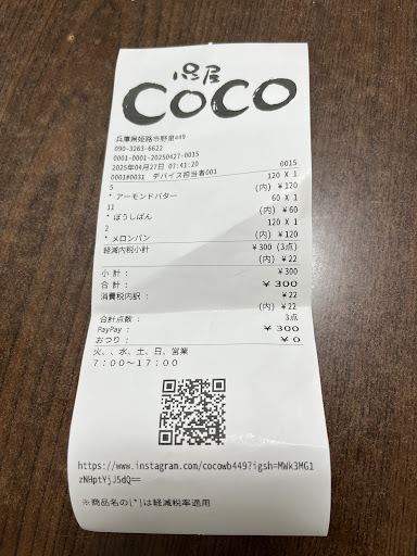 日曜日の朝、何かメロンパンが食べたい… 朝から開いてるパン屋さんを検索すると、COCOさんがヒット!
