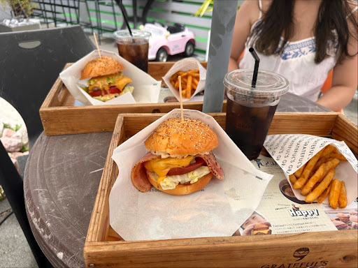 The burgers are very tasty all the ingredients seem to be handmade and fresh. The staff is very friendly, and the service was great. The environment is quite unique; I found it super cozy, even though it’s an open-air space. It was just a little too warm because it’s outdoors, but it was still very pleasant. I also recommend the donuts they are very tasty and were filled on the spot. I highly...