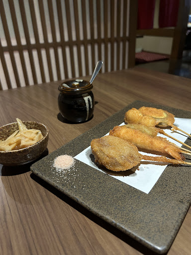 Read moreみゆき通りの客引きが オススメするので行ってみたが、最悪! 3階の座敷に通されたが、上に上がる階段はコンクリートむき出しで、およそ飲食店らしくない。 どうやら3階は宴会場のよう。 最近よくあるタブレットで注文するタイプで、メニュー豊富と言っていたがそんなにない...。 しかも90分の時間制限付き(後から言うなよ) 出てきた食事も全部大したことなく、串揚げは待てど暮らせど出てこない。 店員を呼んで聞くと、「確認します」と言ってしばらく回答なし。かなり経ってから、「ただ今串揚げ全品、お時間をいただいております」との事。(平日やで今日!) 極めつけが、隣に座った客がタバコを吸い始める!(おい、今どき非喫煙と喫煙の区別もしてないやん!) 未だ来ない串揚げをキャンセルして速攻出ることに。 会計で店員を呼ぶと「下でお願いします」と言うので、2階に降りたがレジらしきものはどこにもない。1階か?と思い、下まで降りたらもうそこは店外。もう一度2階に戻り、ちょうどいた店員に会計どこですかと聞くと、「ここです」と言って棒立ち。(ここ、ただの通路ですけど!) ここってどこやねんと言うと、やっと空気を察して別の店員が動き出す始末。 会計場所が客に見えない系の店だったが、あのまま会計せずに帰ればよかったと思うほど、ダメな店だった。 そもそもタブレットやから、伝票も無いし、うちらの会計をどうやって特定してるのか謎。(間違えてたらどうすんねん...