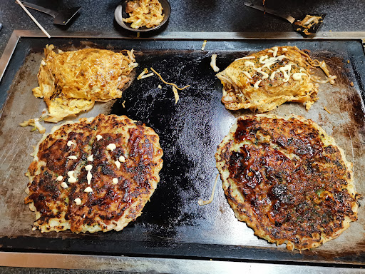 This is a hidden gem! The food is amazing, hot plate on your table and very friendly staff if you make the effort to use some basic Japanese phrases. Highly recommend if you want to experience a local speciality dish at very reasonable prices. They also have an English menu and speak some basic English. Kids (probably 8 and up) are welcome if they are respectful and well behaved as there is a hot plate right in front of you. Also the "large" beer is...