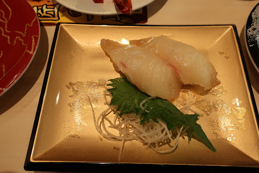 It's a really nice sushi place with some unique creations. The 150 yen plates are really limited in selection so if you're thinking that this is a cheap place just because you see the 150 yen signage at the front of the store, you'd be mistaken.